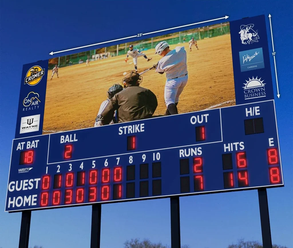 A Part of the common use of the video scoreboard to track score and time, videos and advertisements can also be played in real time.